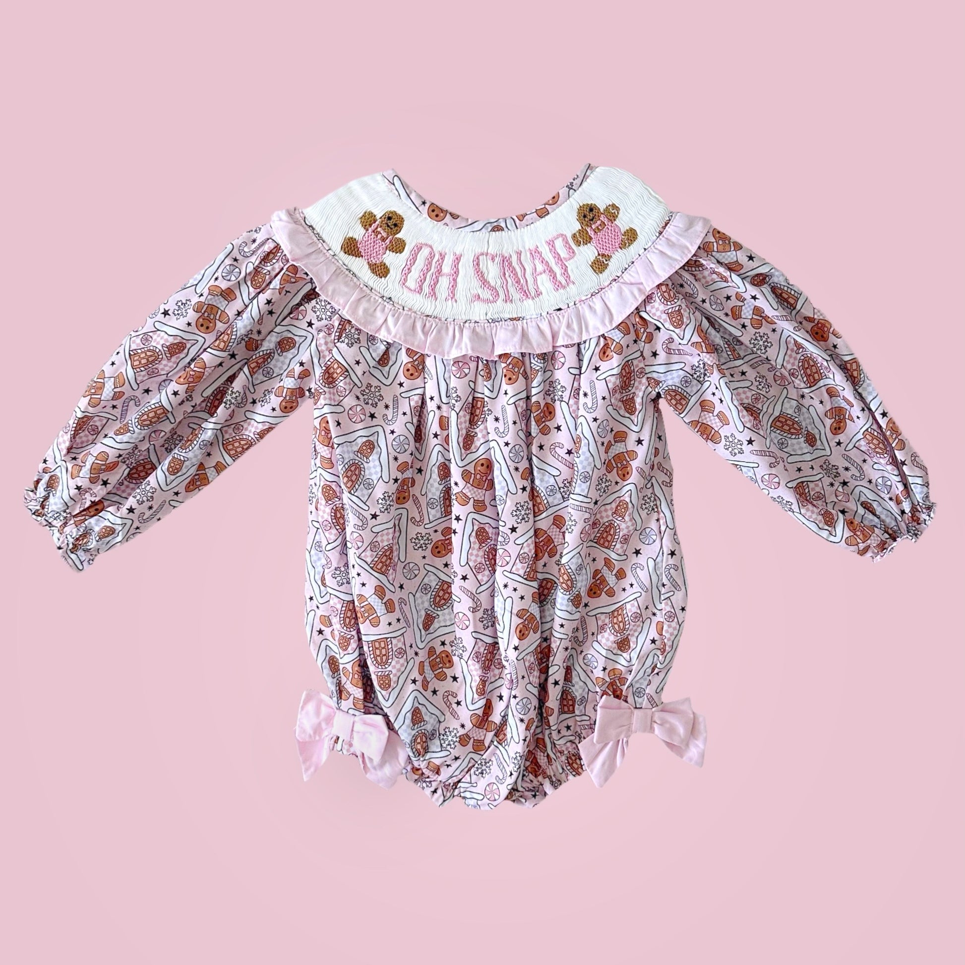 - This gingerbread printed bubble is made in a soft quality woven fabric and is a sweet, unique outfit for the holidays!