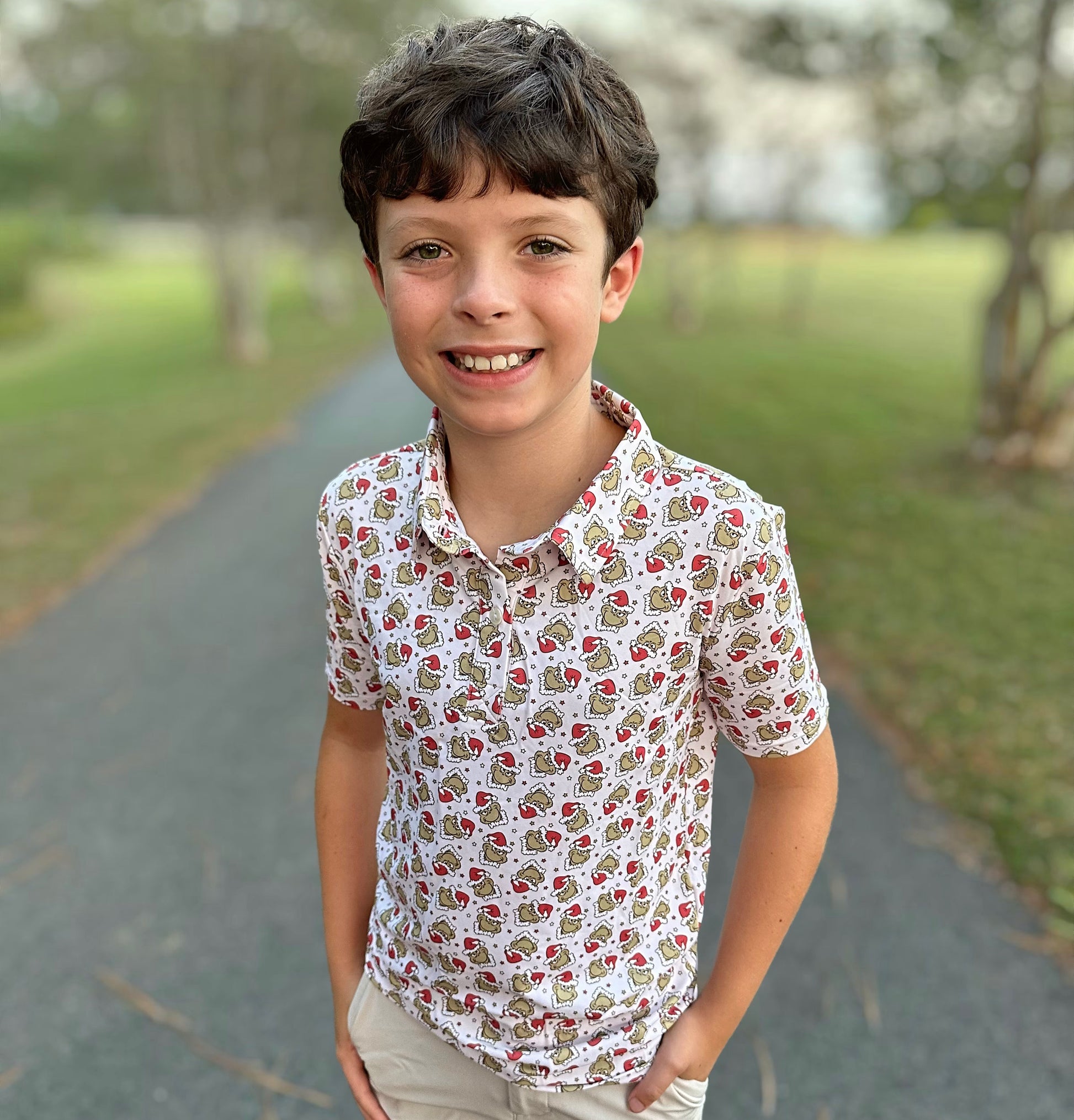 - This mean guy printed polo is made in a soft, quality knit fabric